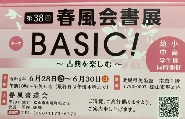 第38回 春風会書展 【松山市】 開催期間 2024年6月28日(金)~30日(日) 会場 愛媛県美術館 南館1F 住所 愛媛県松山市堀之内 開館時間 10:00~18:00(最終日は16:00) About テクポ事務局 View all posts by テクポ事務局 →