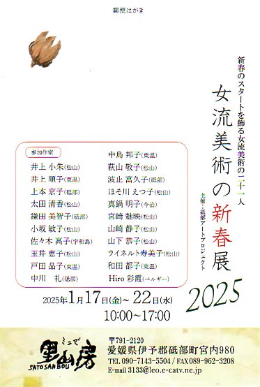 女流美術の新春展2025 【砥部町】 開催期間 2025年1月17日(金)~22日(水) 会場 ミュゼ里山房 住所 愛媛県伊予郡砥部町宮内980 開場時間 10:00~17:00 About テクポ事務局 View all posts by テクポ事務局 →