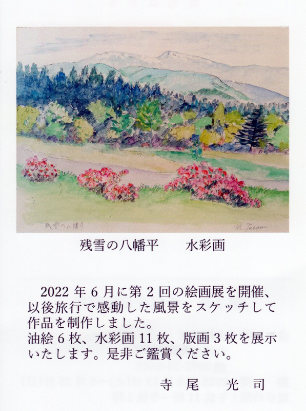 第3回 寺尾光司絵画展 【大洲市】 開催期間 2025年5月13日(火)~25日(日) 会場 山荘画廊 住所 愛媛県大洲市大洲398-6 連絡先 0893-24-6663 入場料 – About テクポ事務局 View all posts by テクポ事務局 →