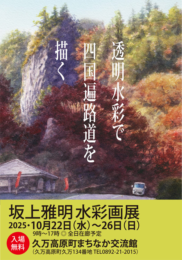 四国遍路道で印象に残った風景を透明水彩で描きました。ご要望によりその作品を集めた水彩画作品集を出版。その中からできるだけ多くの作品を展示しています。水彩画の魅力と共に遍路道を旅していただけたら幸いです。